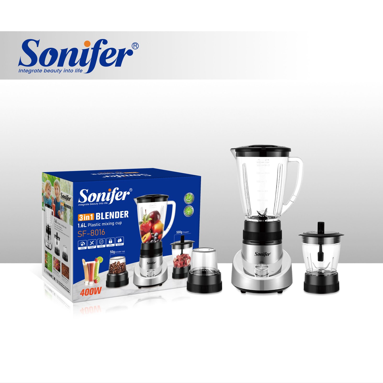 Detachable Plastic Cup Multi-function Grinder Meat 3 in 1 Food Chopper Blender