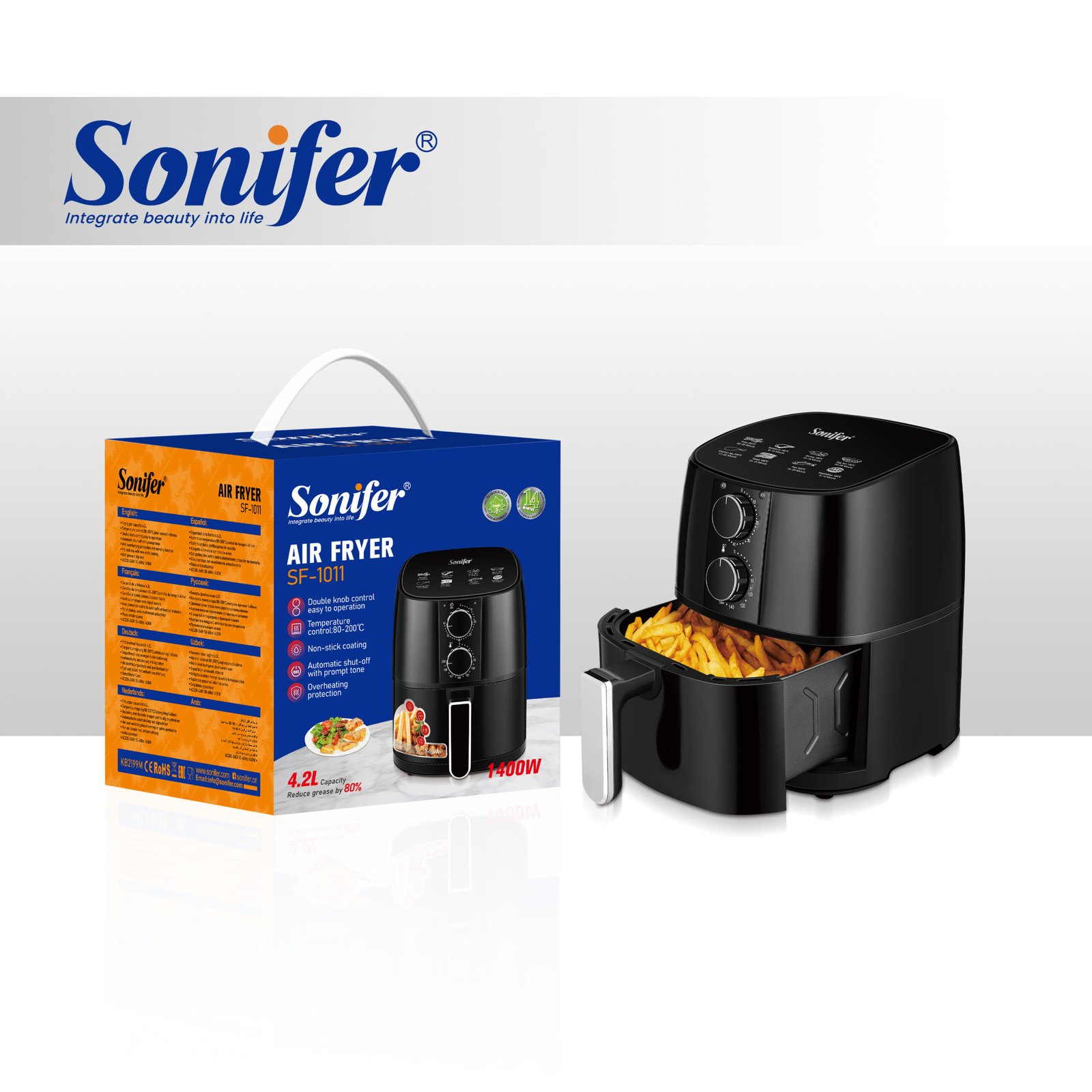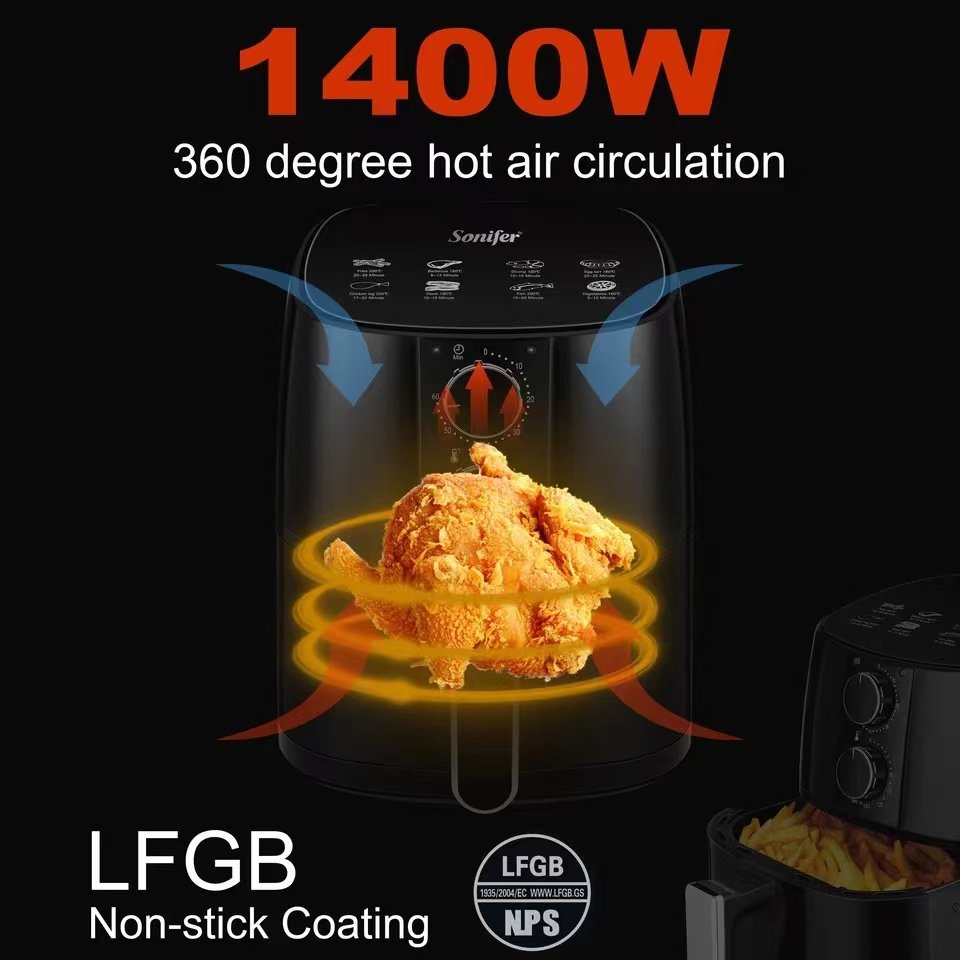 SF-1011 Double Knobs 4.2L 1400W Adjustable Temperature Electric Timer No Oil China air Fryer Oven